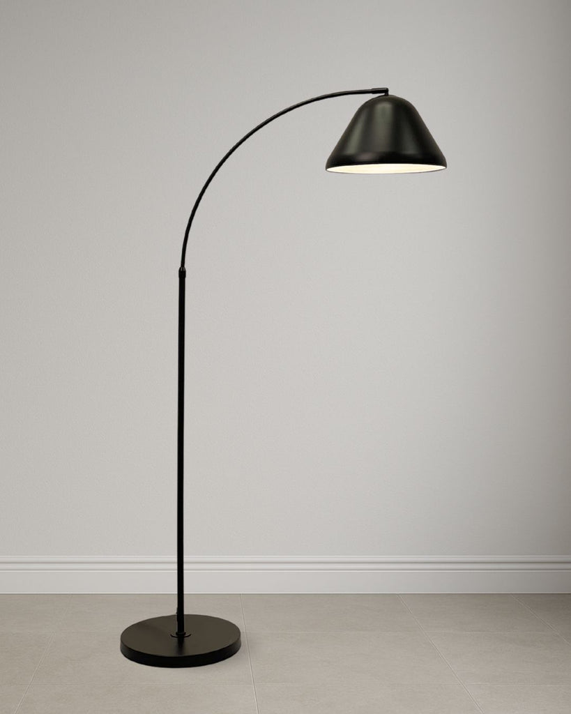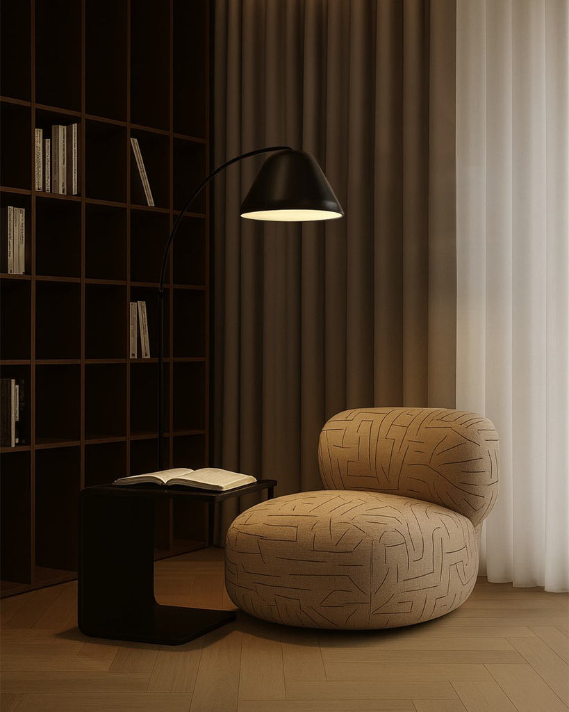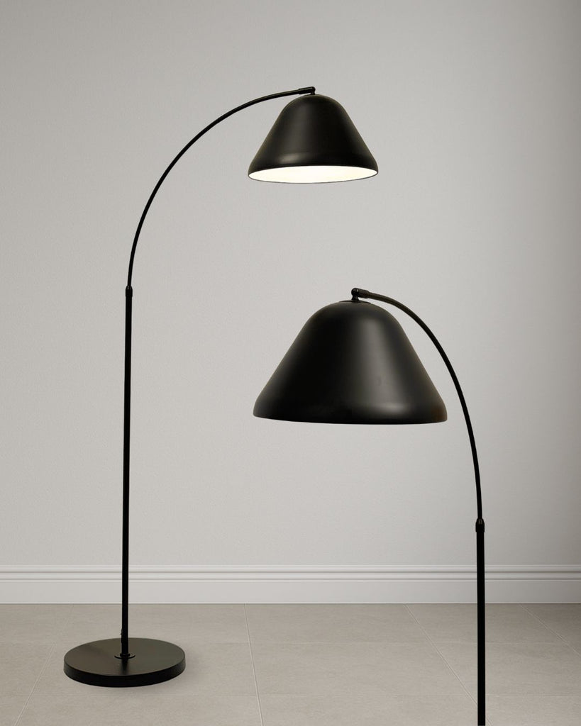 The Cotto floor lamp brings refined simplicity into any space with its sleek arched silhouette and matte-black finish. Designed with a gracefully curved arm and a sculpted cone shade, it delivers warm, focused illumination ideal for reading corners, living rooms, and modern lounges. Its clean lines and balanced proportions make it a versatile statement piece, subtle yet striking. Perfect for contemporary, minimalist, and organic-modern interiors.