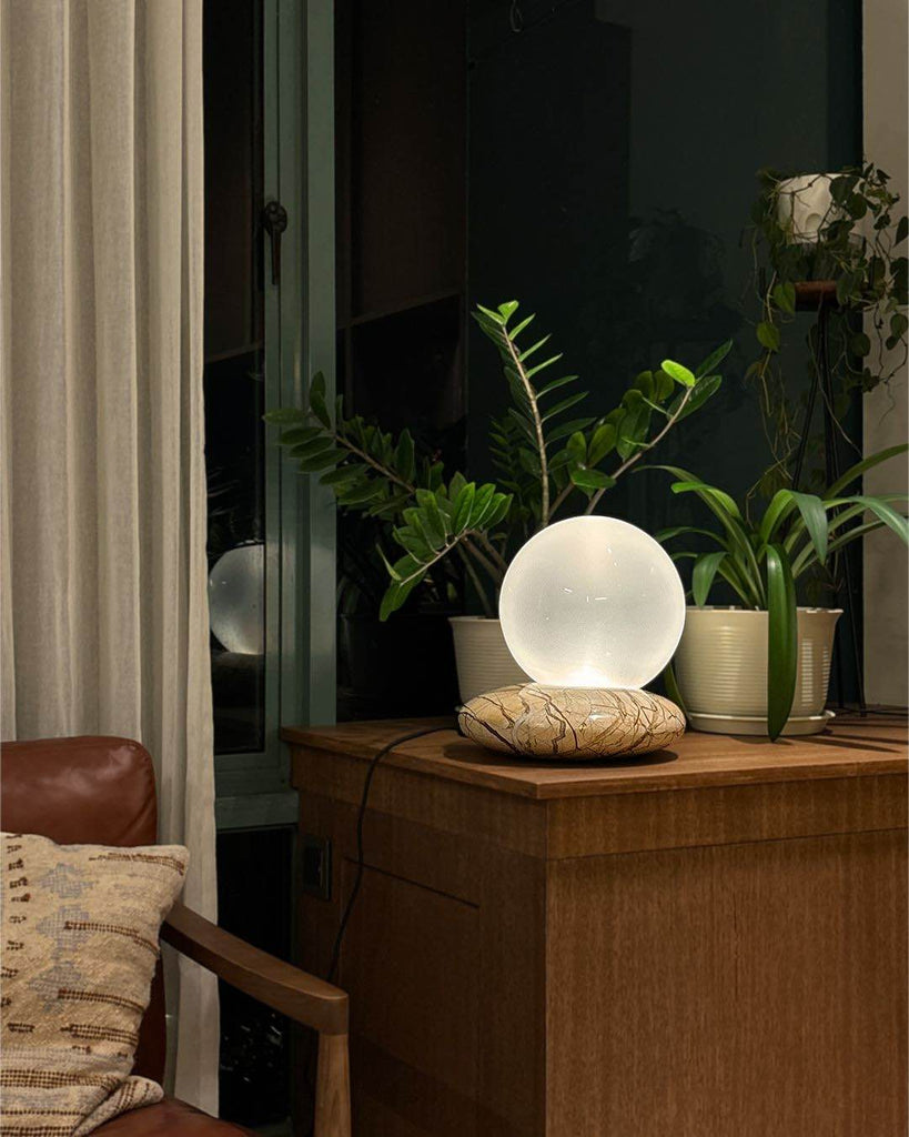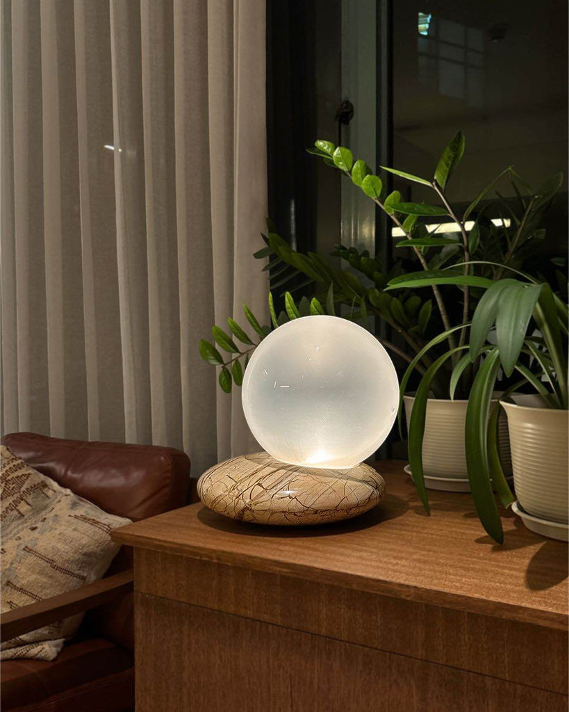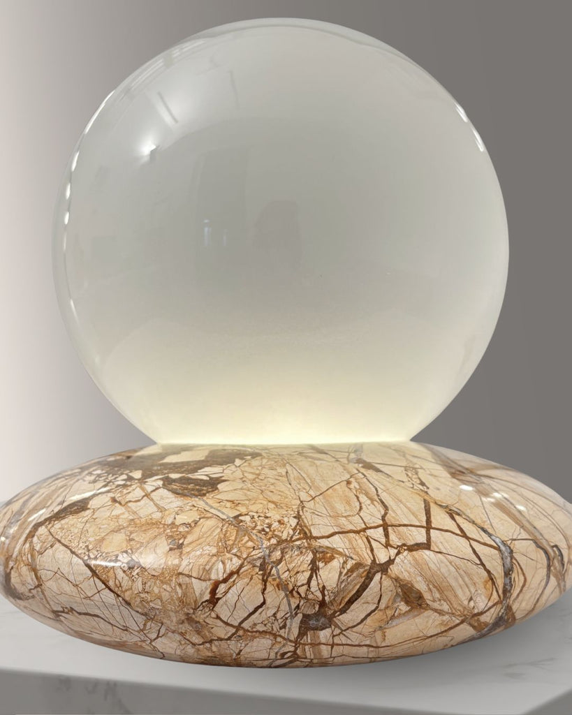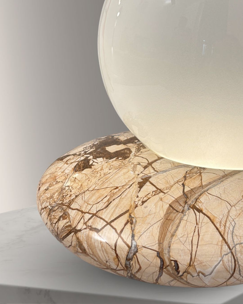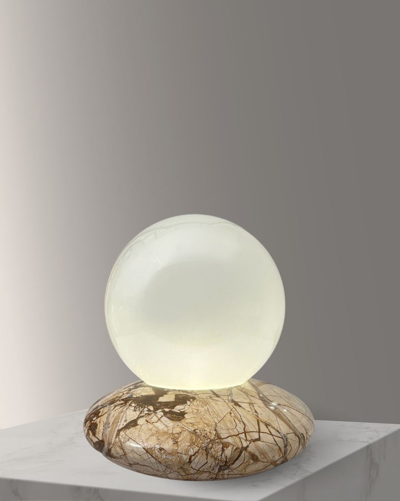 The Cavo Marble table lamp blends natural beauty with modern elegance. A glowing glass globe rests on a beautifully veined marble base, creating a perfect balance of softness and strength. Each piece is unique, showcasing the marble’s natural patterns while giving off a warm, calming light. Chic and timeless, the Cavo adds a touch of effortless sophistication to any space—whether on a bedside table, console, or corner nook.