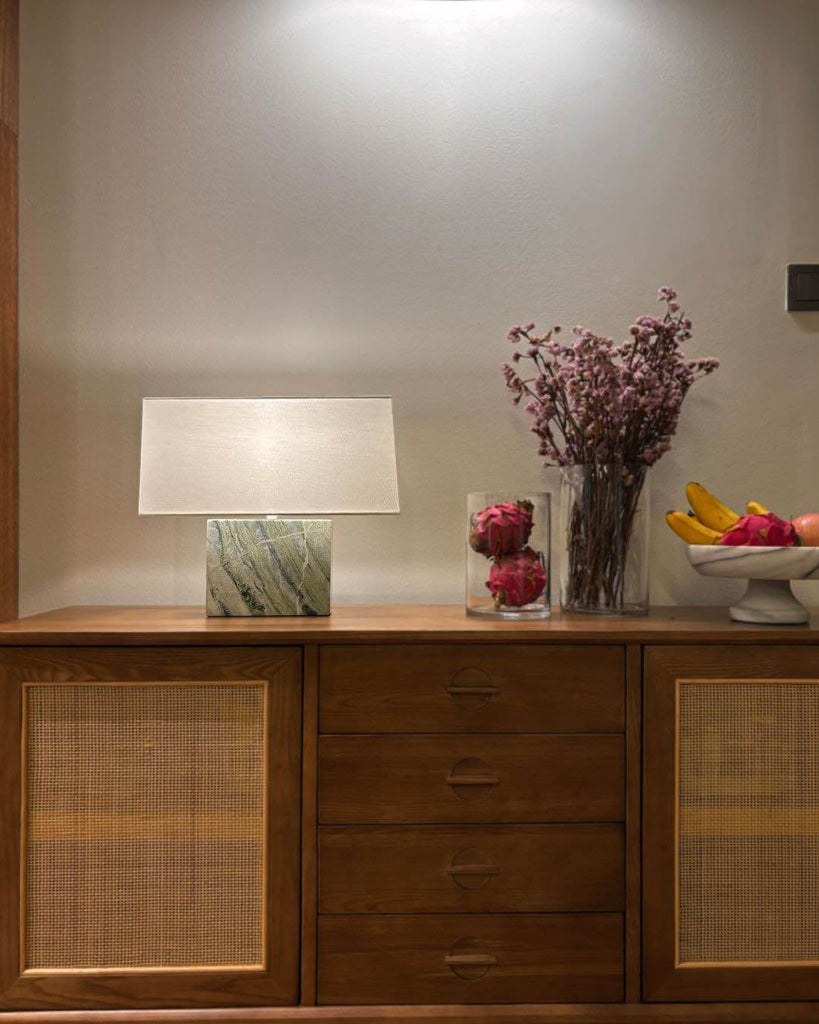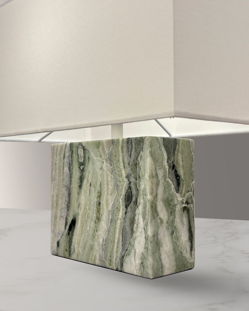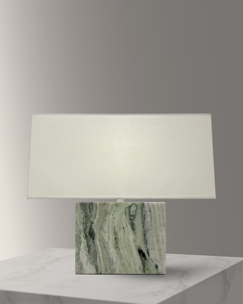 The Ellor Marble table lamp embodies timeless elegance through its refined blend of materials and form. A solid marble base showcases intricate natural veining, grounding the design with strength and sophistication, while the fabric shade diffuses a warm, gentle radiance that enhances any interior. Perfect for bedside tables, consoles, or living spaces, this piece balances sculptural beauty and functional lighting—bringing an effortless touch of luxury to contemporary and classic settings alike.
