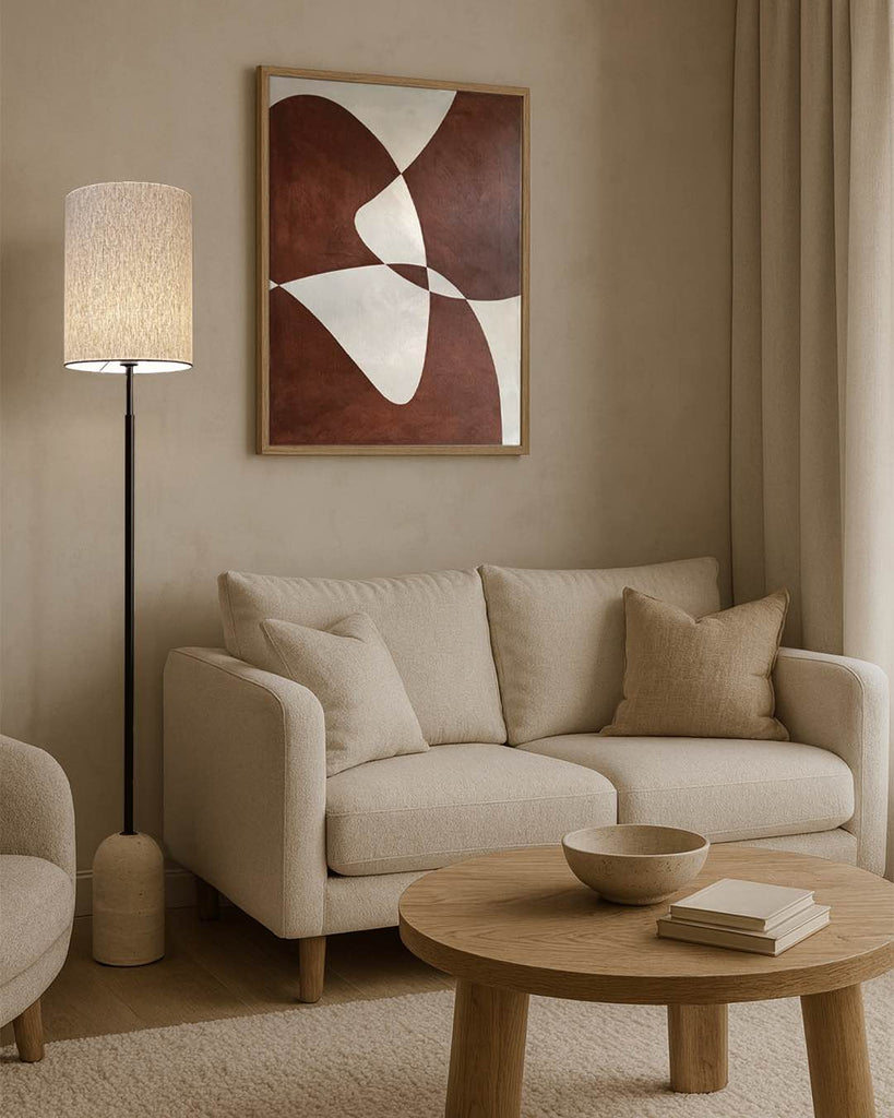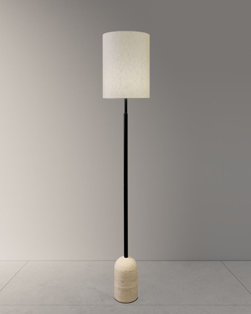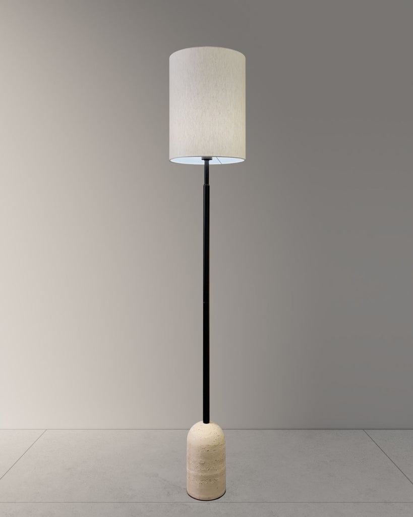 Elevate your space with the timeless elegance of the Kali Floor Lamp. Featuring a natural Travertine stone, each piece carries unique textures and earthy tones that bring warmth and character to any interior. The fabric shade diffuses light softly, creating a cozy, ambient glow perfect for living rooms, bedrooms, or reading corners. Balanced by its sleek black stem, this lamp blends modern minimalism with organic sophistication—making it both a functional light source and a refined statement piece.