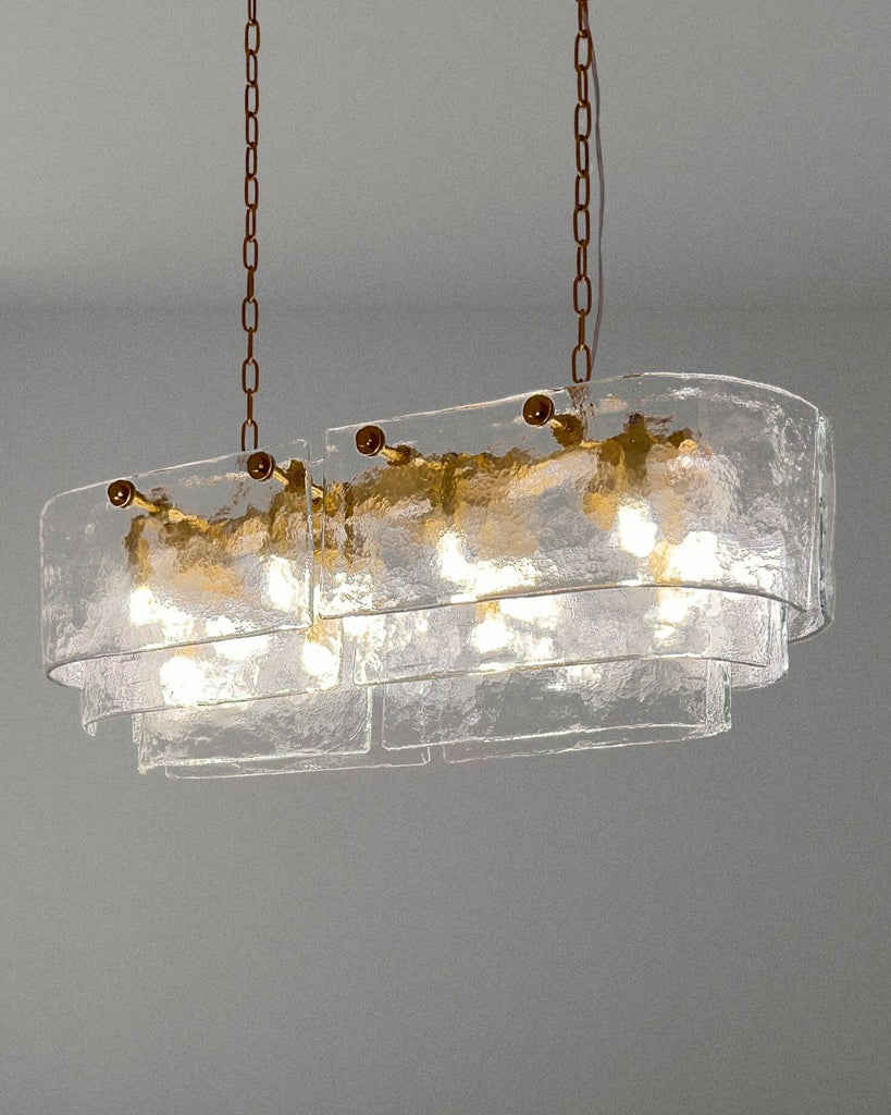 Made with unique glass texture panels, Calista chandelier creates a dramatic soft glow, place above the dining table and create the perfect mood with its lighting effect adds a touch of elegance to any room.