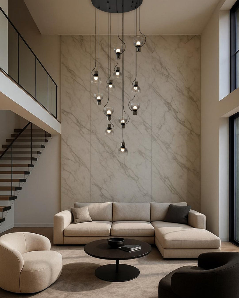 The Vellor Cascading Chandelier is a masterpiece of modern luxury, featuring hand-crafted glass pendants suspended at varying heights from a sleek metal canopy, creating a breathtaking waterfall of light. Each diffuser houses a Fixed LED, offering warm, energy-efficient illumination that enhances its sculptural presence. Designed to captivate in grand spaces such as double-height living rooms, staircases, or elegant dining areas, Vellor embodies refined sophistication—where timeless craftsmanship meets contemporary allure.
