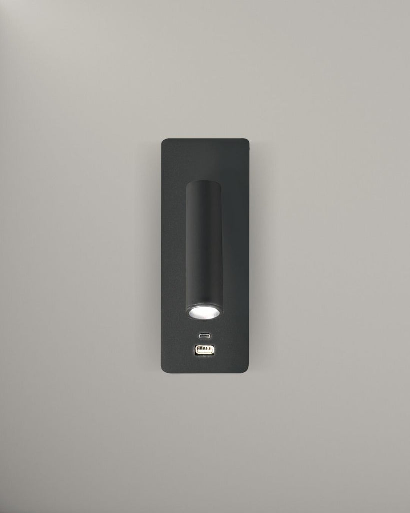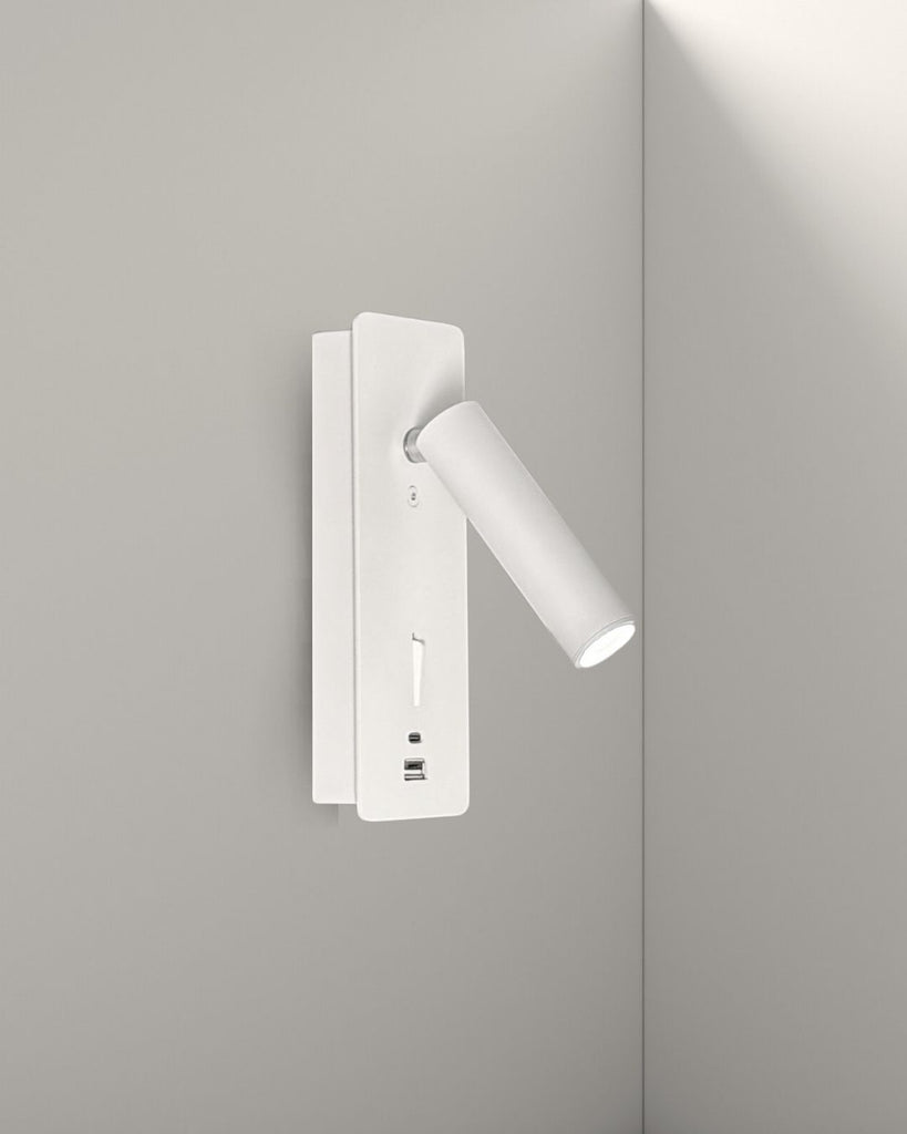 The Wes Wall Lamp blends modern functionality with minimalist design, featuring a tilting spotlight head, built-in USB and USB-C ports, and a streamlined toggle switch. Available in matte black or white, it's ideal for bedrooms, reading nooks, or hotel rooms—offering both focused lighting and convenient charging in one sleek fixture.