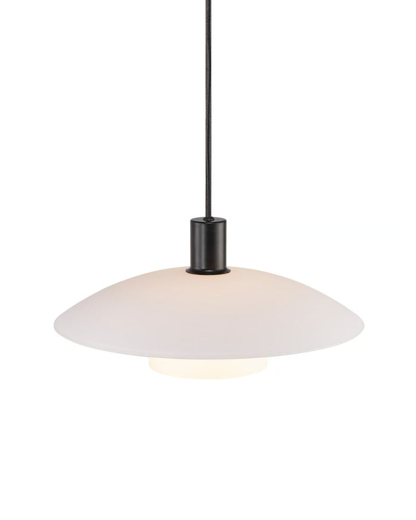 Verona is a traditional series in a classic Scandinavian design. Verona is constructed of two beautiful opal white glass shades that ensure a nice even distribution of light into the room. Simultaneously, the contrast between the white opal glass and the matte black metal contributes to a modern look.Verona pendant emits a soft glare free light without compromising on the light output. Therefore, the timeless pendant has many applications and can be used for example above the dining or coffee table.
