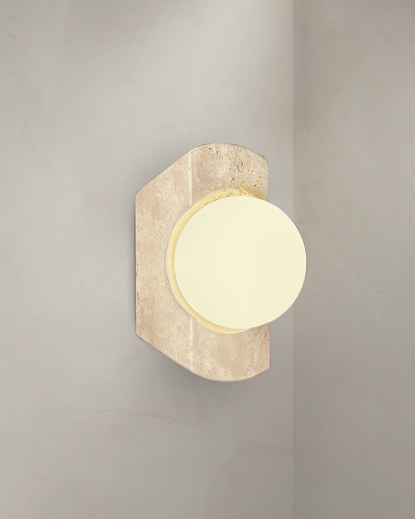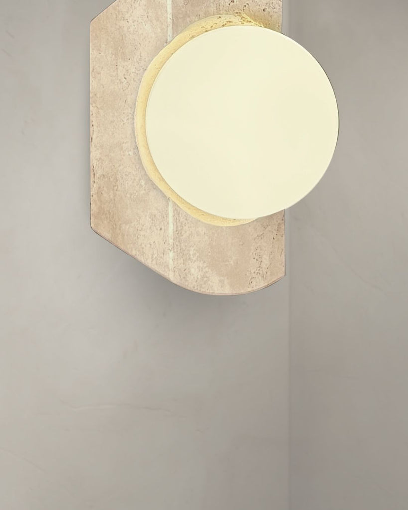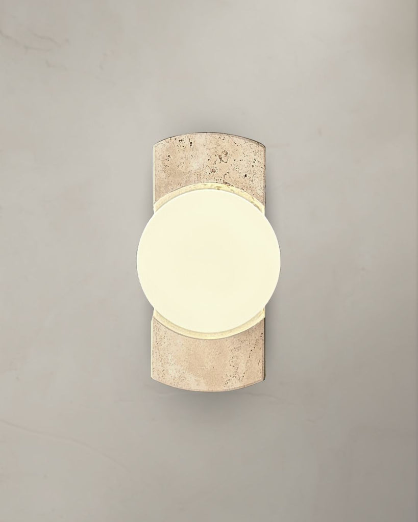 Arlo is a artisanal wall lamp crafted from natural travertine stone and topped with a smooth frosted glass globe. Its rich, organic texture contrasts beautifully with the soft, diffused glow, creating a warm and refined ambiance. Thoughtfully designed to elevate modern, minimalist, and Japandi-inspired spaces, Arlo brings a timeless balance of earthiness and elegance to any wall.