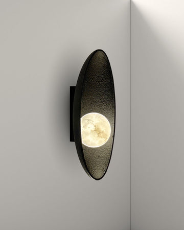 The Sarte Alabaster wall lamp is a striking fusion of natural elegance and modern artistry. Featuring a Alabaster stone within a sleek, textured metal frame, it evokes the serene beauty of a glowing moon suspended in shadow. The soft diffusion of light through the stone creates a warm, ambient glow, adding depth and sophistication to any interior. Ideal for hallways, bedrooms, or statement walls, the Sarte lamp transforms light into sculpture—an exquisite balance of material contrast and timeless design.
